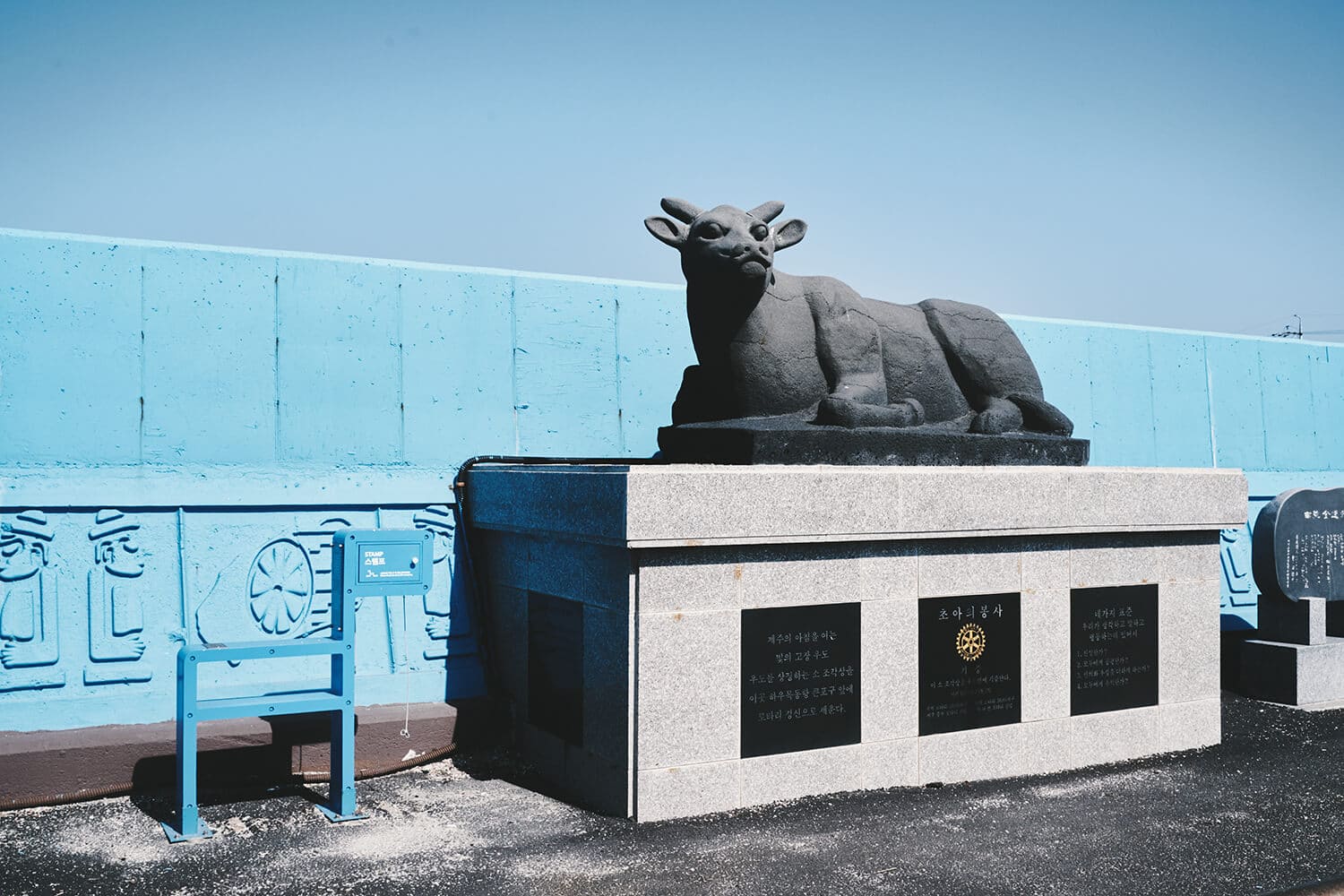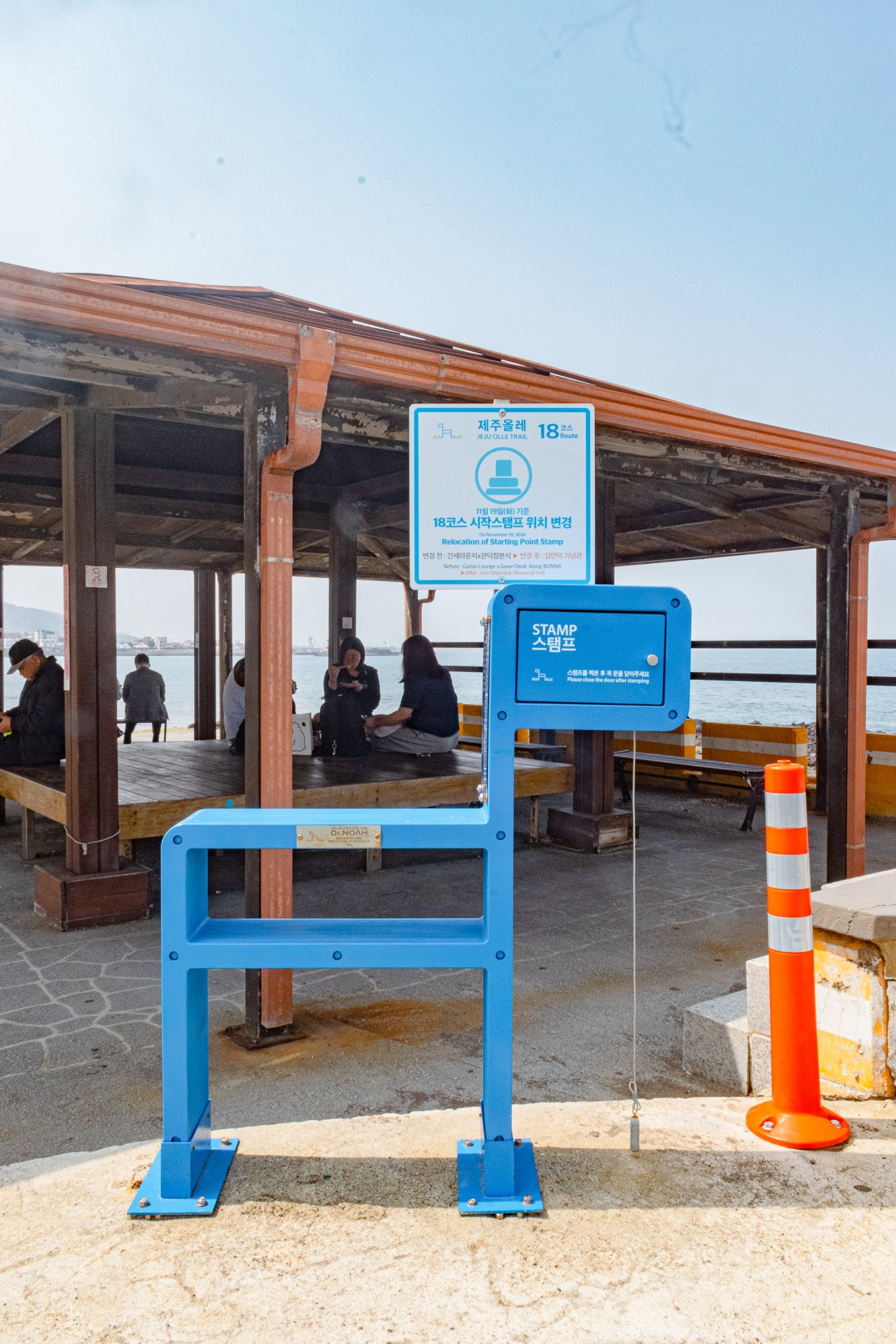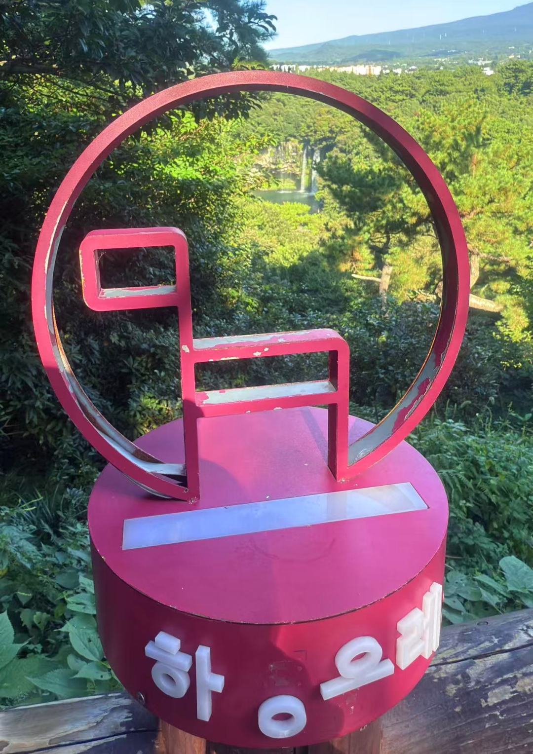 早餐后退房,将行李统一寄存前台。今天我们将完成100km。到达孤根山脚下,我们沿着步道而上,没多久到达山顶,蓝色小马就在我们面前,盖完章下山,路过翁渡瀑布,来到西归浦客运站,这里是7号线的终点和7-1的起点。