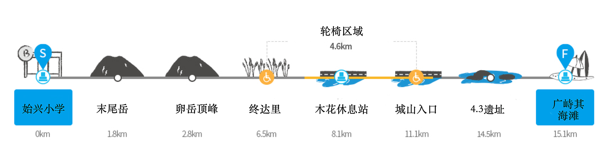 路程:徒步15.6km,用时6小时