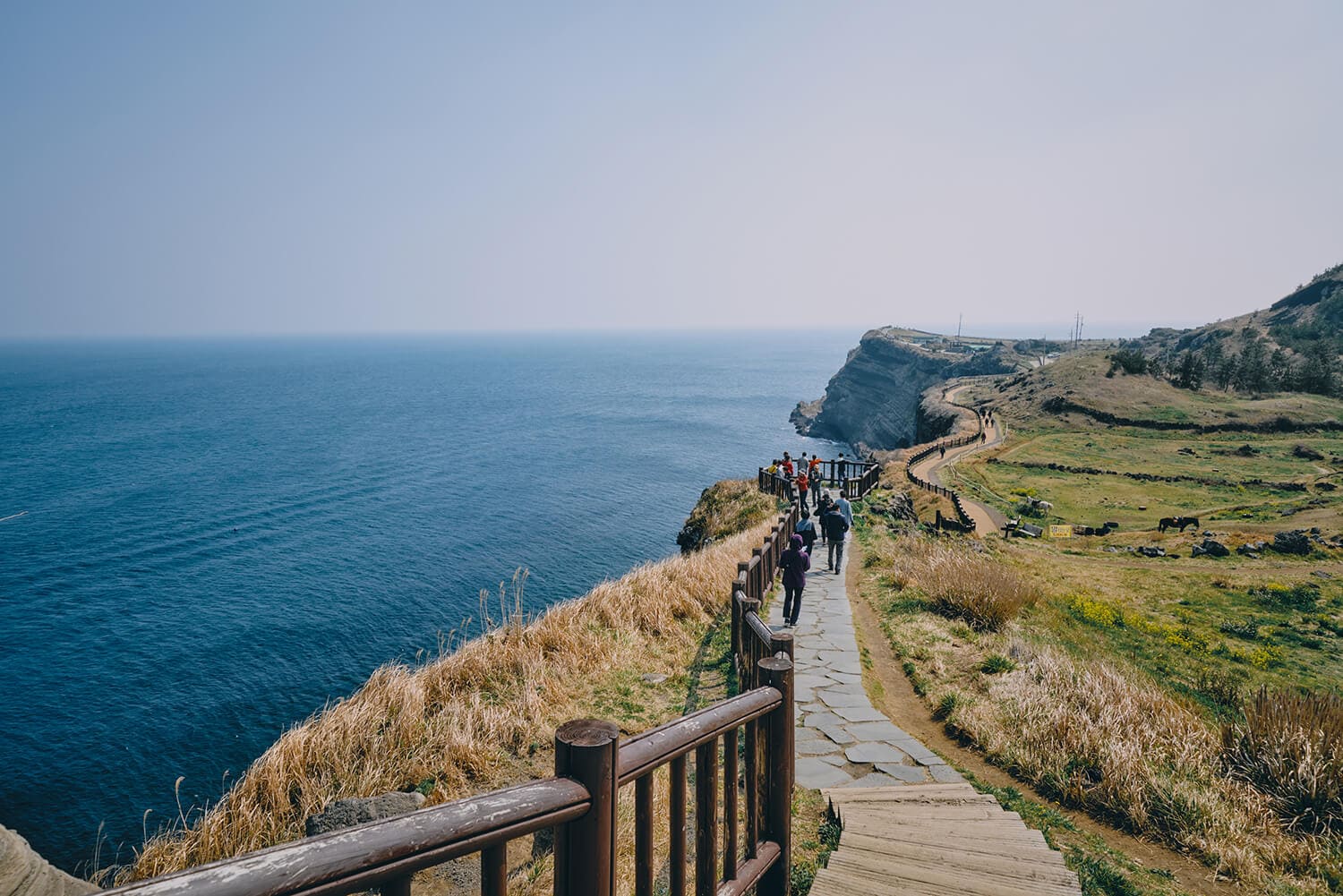 1号径是偶来的精神起点,被称为“友情之路”。它串联起城山日出峰脚下的抹眉岳与卵岳,登顶可360°俯瞰牛岛与火山田园,是济州东部壮阔海景的经典代表。