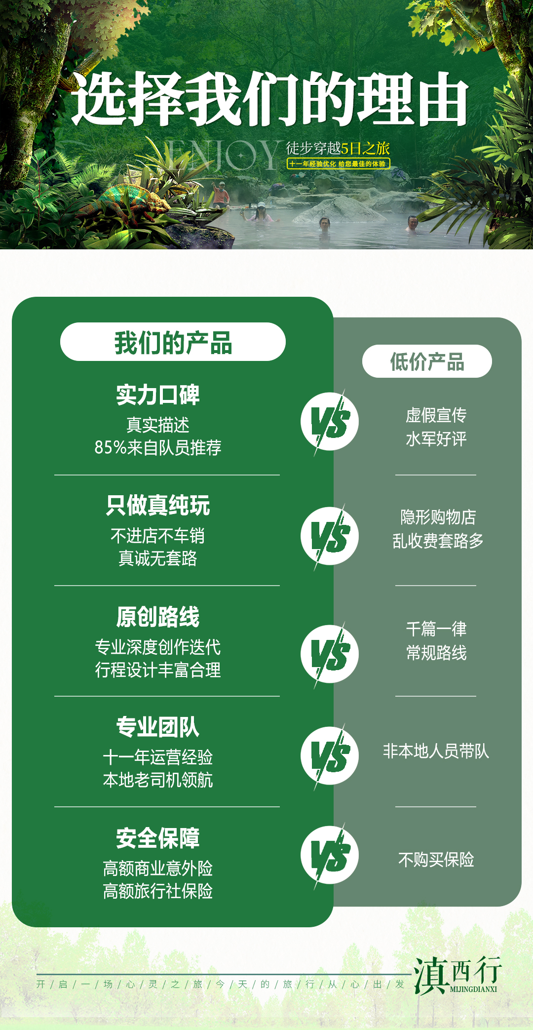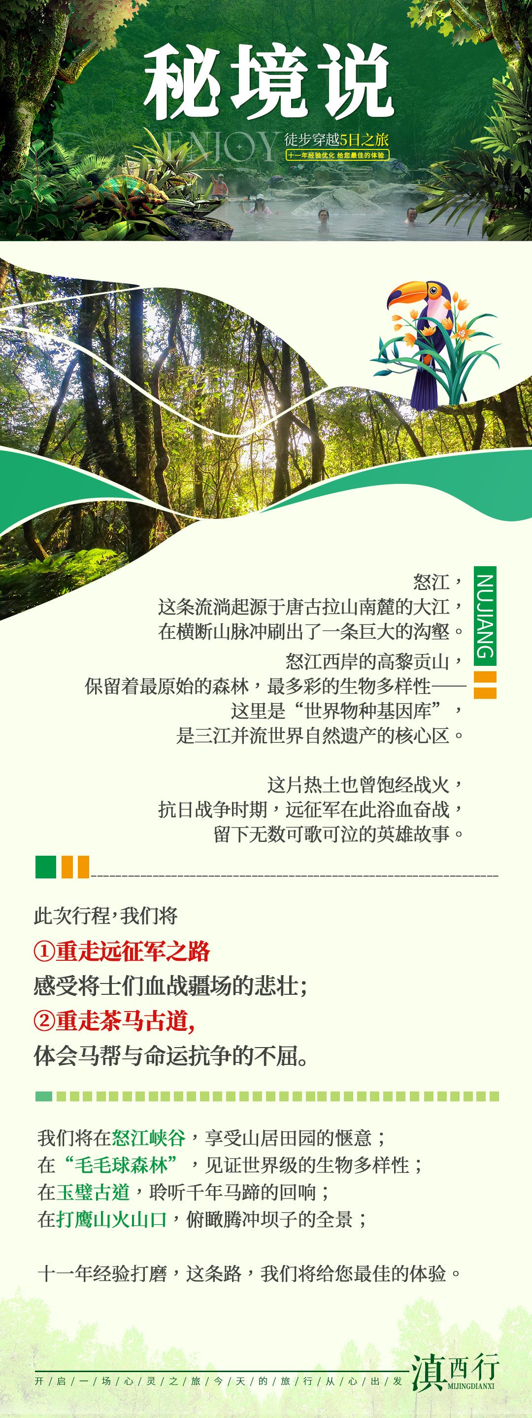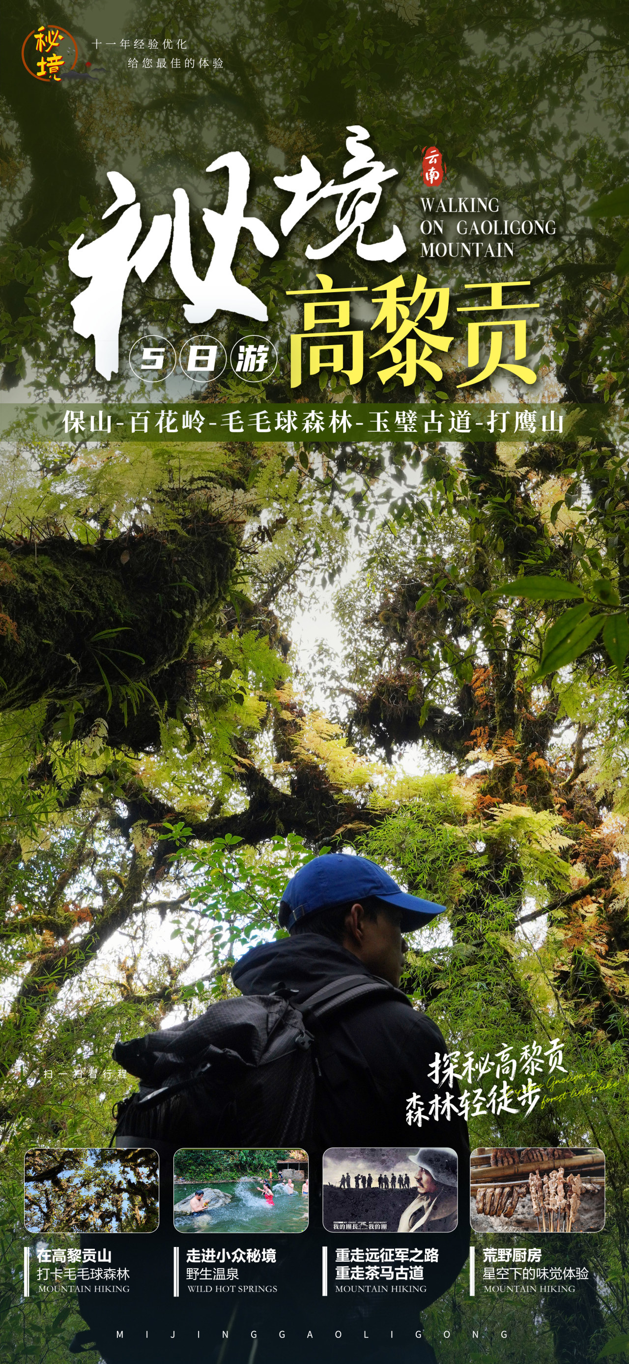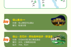 4、如果遇到百花岭景区封闭,我们会将行程调整为【保山-高黎贡山秘境徒步-野温泉】,徒步约7-9KM,景观、体验和百花岭类似,住宿地点随之调整;