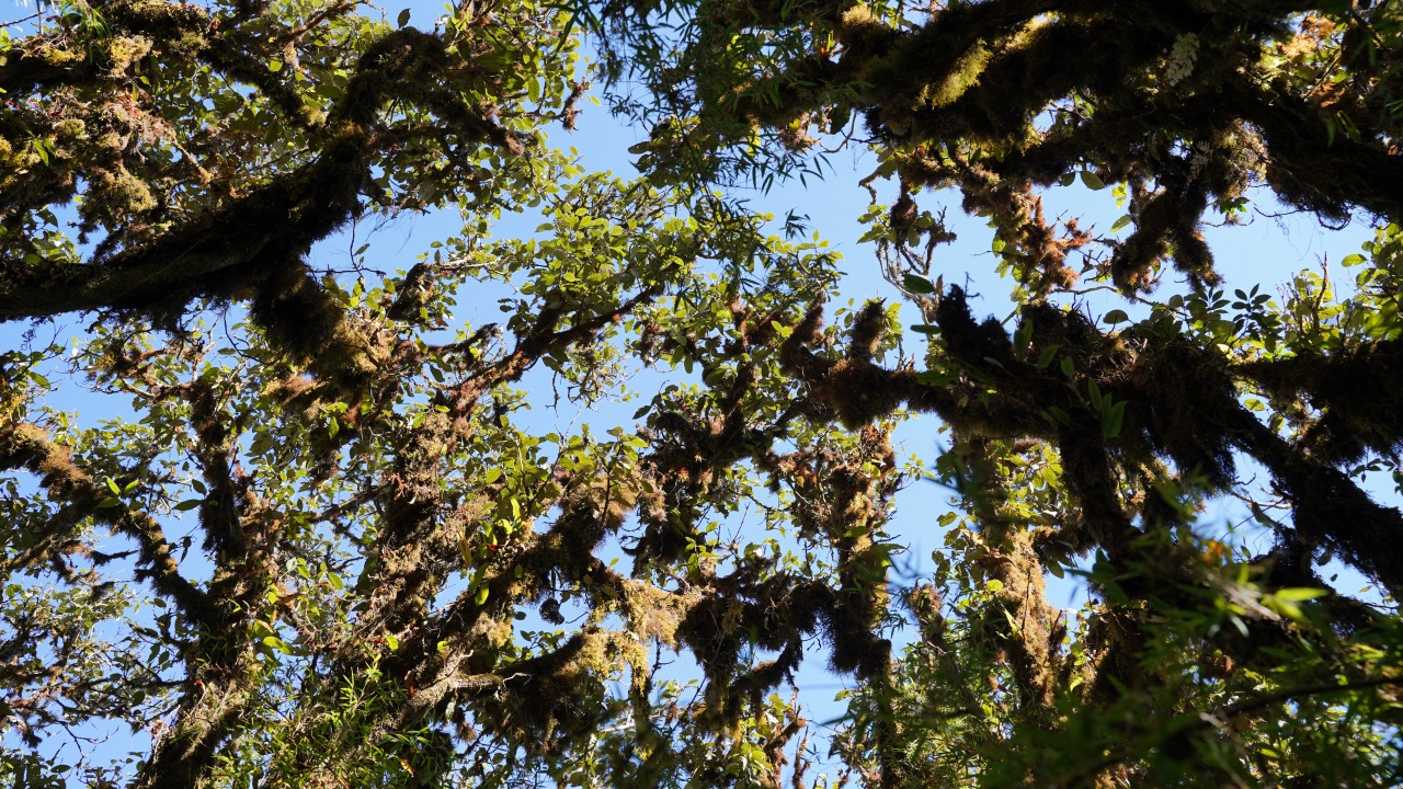中午时分,抵达高黎贡山之巅——【毛毛球森林】的所在地。千万株绒苔在朽木与岩石上膨胀成颤巍巍的绿云,松萝垂落成银色珠帘,光线穿透三十米树冠时碎作翡翠星尘。蕨类旋涡在倒伏的巨树躯干上生长出时间年轮,偶有血雉掠过苔毯,惊起一片荧光孢子雾。我们在此打卡、拍照、发呆、做梦。