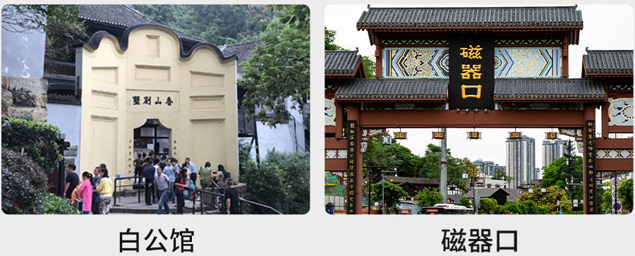 游览国家AAAA级景区千年古镇【磁器口】(游览时间不低于60分钟)一条石板路,千年磁器口,又名“小重庆”。古有民谣“白日里千人拱手,入夜后万盏明灯”便说明了此处的繁荣,磁器口 蕴含了丰富的文化及各类小吃,走进磁器口,吃麻花,喝酸奶,品地道重庆小吃,做一次本地人。