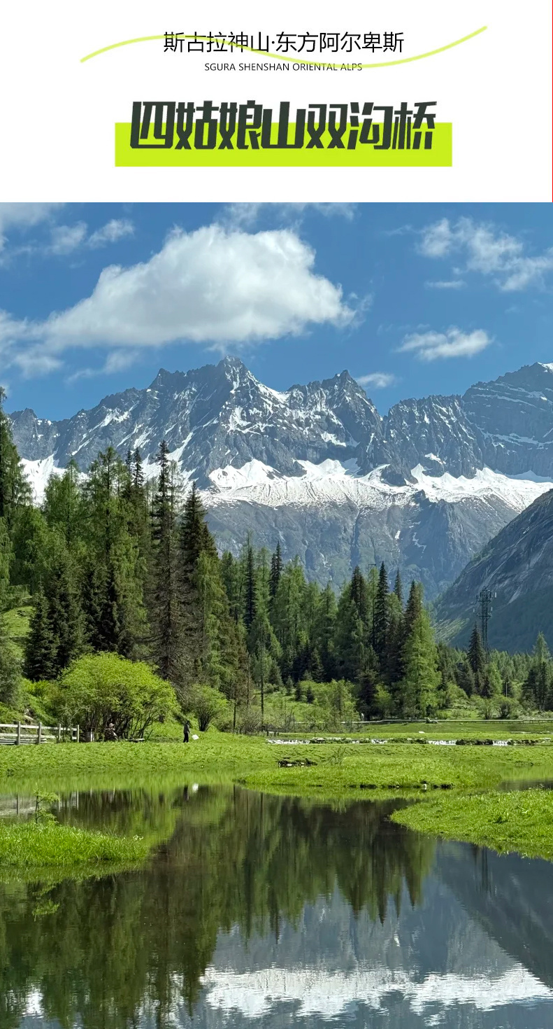 07:30早餐后,出发前四姑娘山双桥沟景区,里程约248KM,行车约5小时