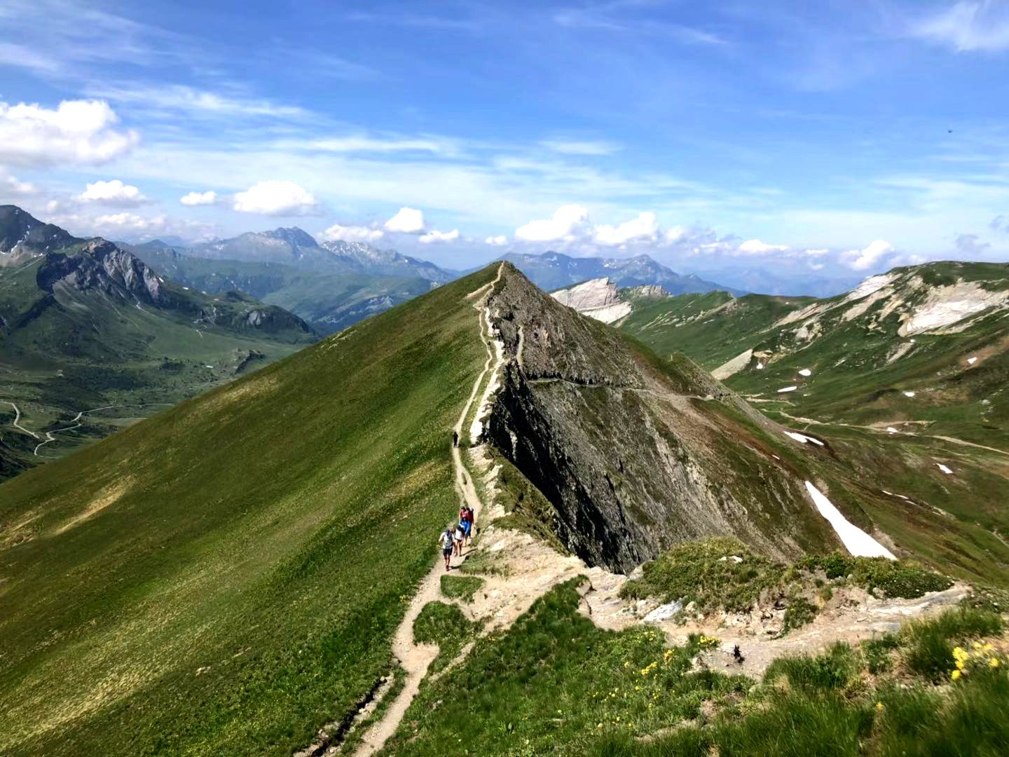 从库马耶出发,我们穿过拉贾小屋(Chalets de la Raja),在博诺旅舍(Bonhomme,2639米)稍作停留,每一个高山小屋,都坐落在让人感叹的绝佳观景点。也许,经过一路以来的行走,我们已经不像前半程对于每一次日照金山的欢呼雀跃,此刻的我们,只是静静的行走,品味着心中慢慢积累和满满溢出的点滴感动。