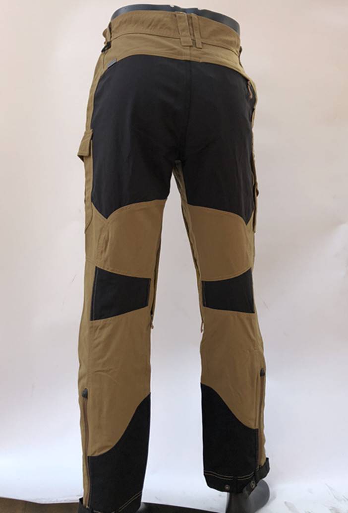 2.膝盖、臀部、裤脚内测等易磨损部位大面积拼接考杜拉耐磨面料,不计成本的堆料,只为了裤子更加耐用。膝弯处拼接弹力透气针织布,更加透气。