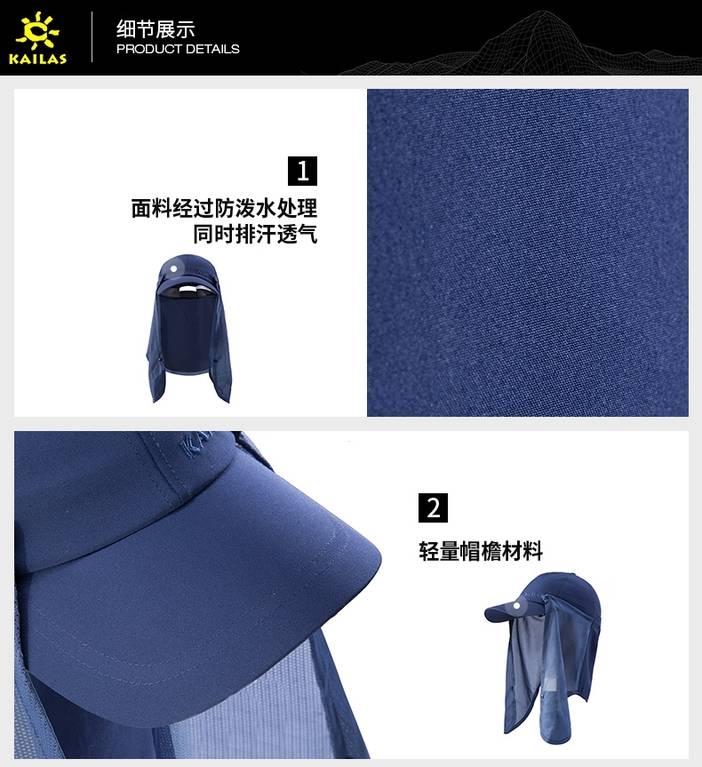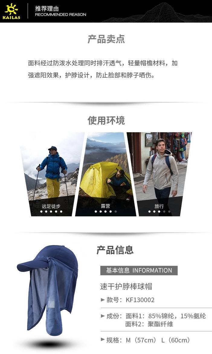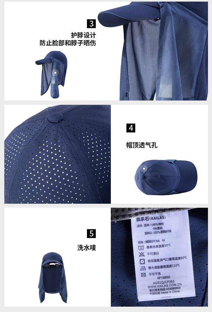 Kailas凯乐石户外运动旅行防晒遮阳帽可拆卸护脖棒球帽子kf130002