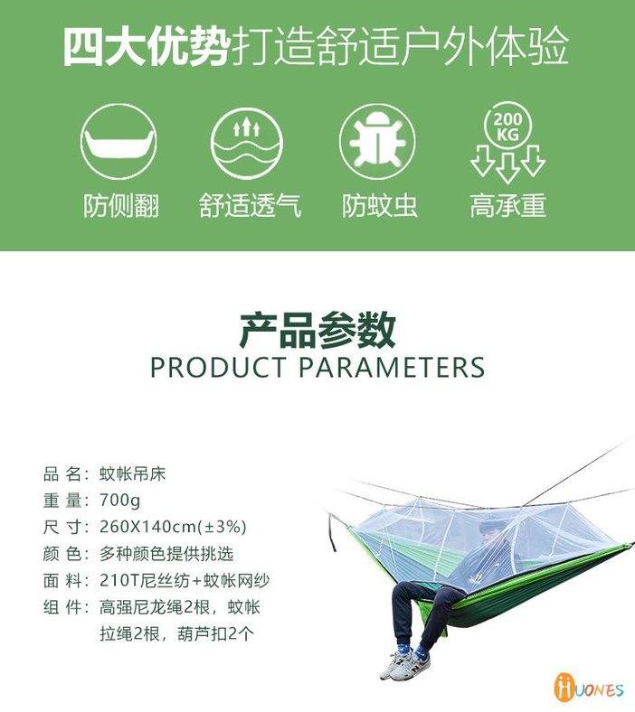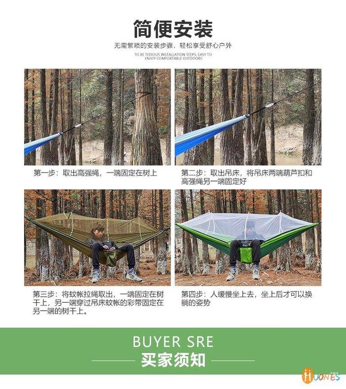 [团优惠]户外蚊帐吊床 防蚊吊床双人尼丝纺布室内外吊床